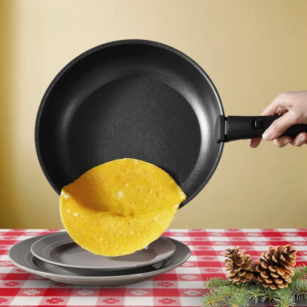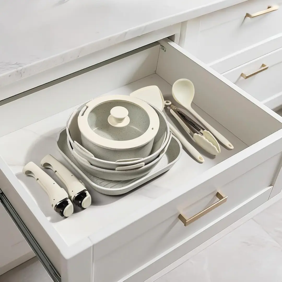 Traditional pans waste space and never stack the way you want. This set solves that. The detachable handles let every pot and pan nest neatly inside the next, so you free up entire shelves in your cabinets and drawers. No more wrestling with unstable towers of cookware or hunting for the right lid. Just a compact, organized kitchen with room for everything else the holidays bring.